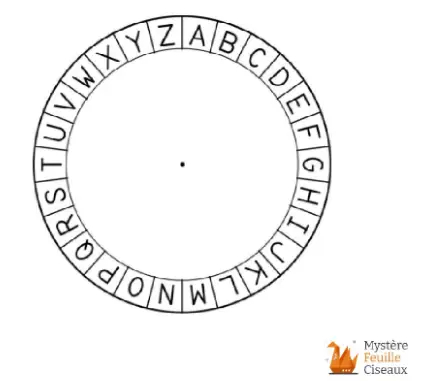 Pour utiliser le code césar, vous pouvez vous aider d’une roue d’encodage, qui est un dispositif simple et pratique, constitué de deux cercles concentriques, sur lesquels sont inscrites les lettres de l’alphabet. Le cercle intérieur peut tourner par rapport au cercle extérieur, ce qui permet de choisir la clé de chiffrement, en alignant les lettres correspondantes. Pour chiffrer ou déchiffrer un message, il suffit de regarder la lettre du message clair sur le cercle extérieur, et d’écrire la lettre correspondante sur le cercle intérieur, ou inversement.