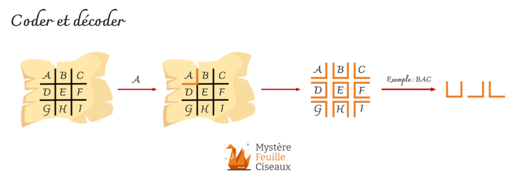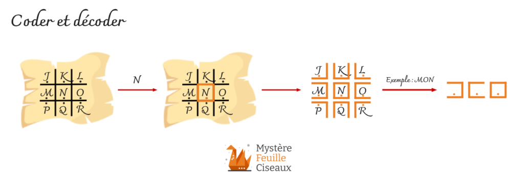 L’ordre des lettres dans les grilles peut parfois avoir des nuances si vous cherchez d’autres exemples sur internet. Cela peut poser des soucis de décodage si vos participants connaissent le code avec une grille différente.