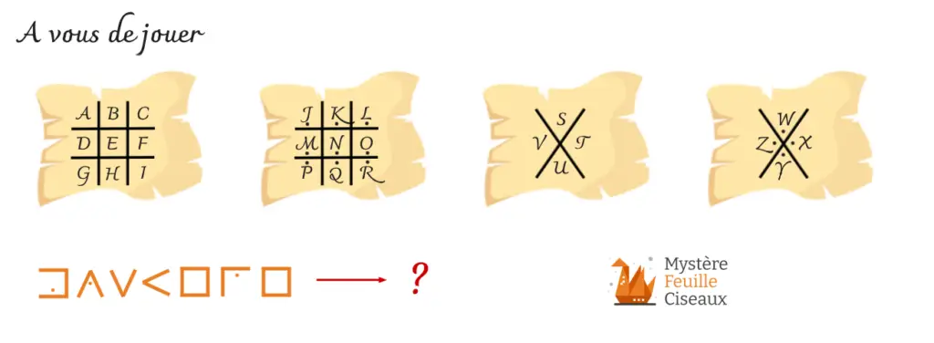 C’est pourquoi nous recommandons très fortement de fournir d’une manière ou d’une autre la grille que vous aurez utiliser pour coder les messages aux participants à un moment donné de votre chasse au trésor ou escape game.